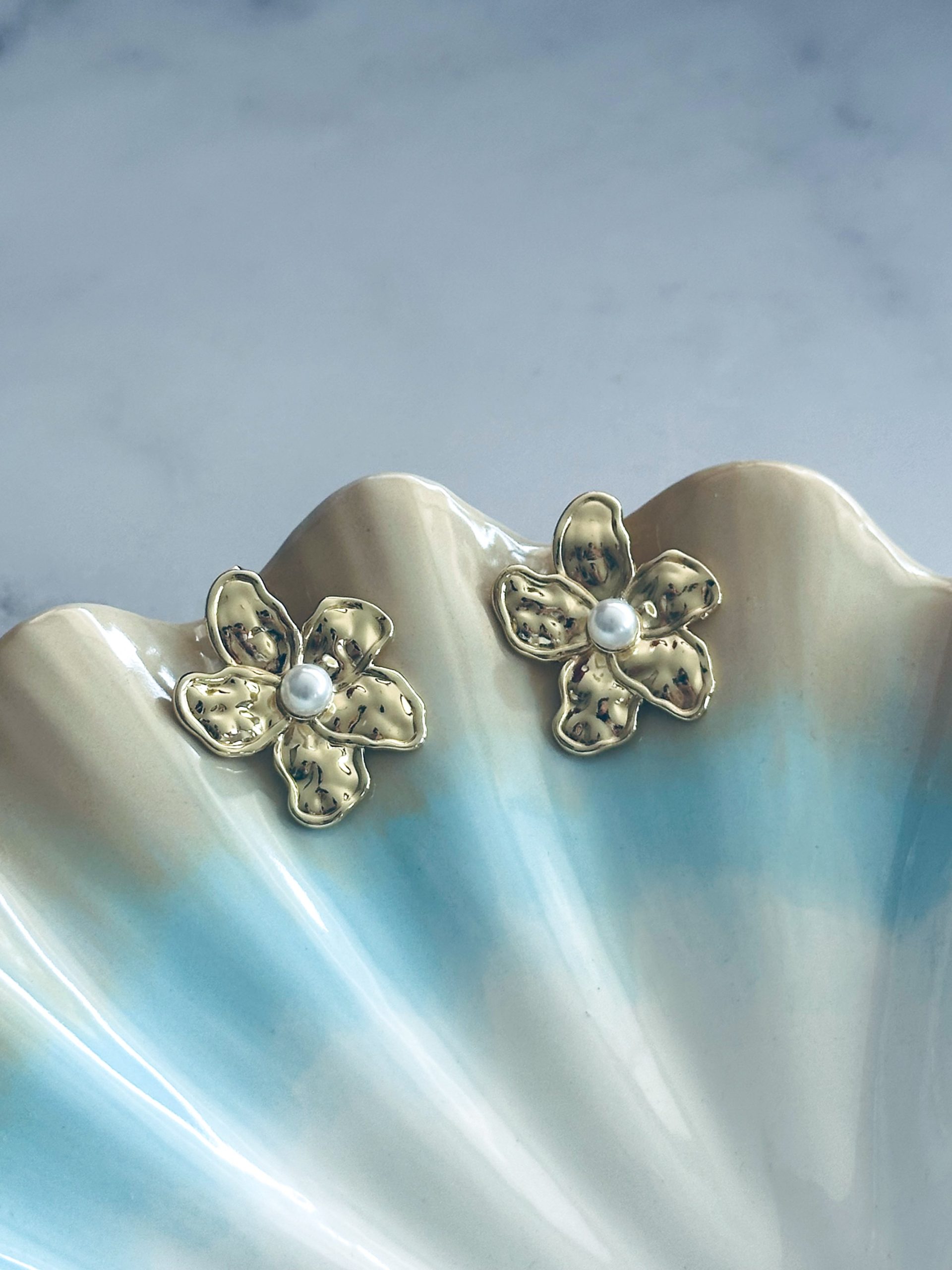 Aros flor perla imit gold cantidad